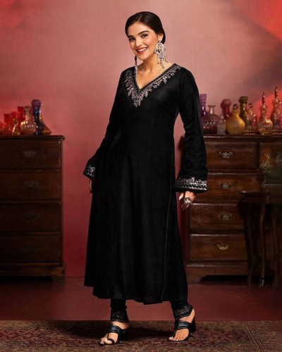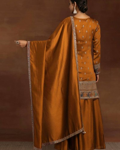 Women chanderi silk embroidery salwar suit set kurta pant with dupatta stitched