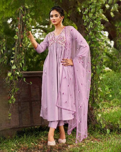 • | Kameez | : | Color- Purple / Fabric- Chanderi Silk |